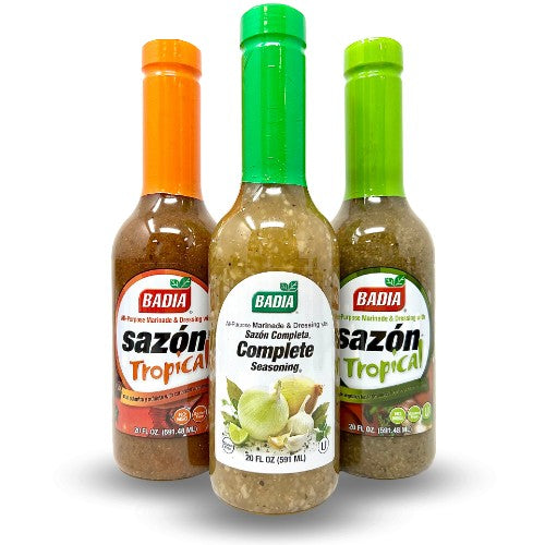 Introducing the ultimate flavor powerhouse for your culinary adventures: the Complete Seasoning & Sazón Tropical Liquid Bundle! 🎉 Elevate every dish with this dynamic trio of marinades and dressings, crafted to perfection by the culinary experts at Badia Spices.