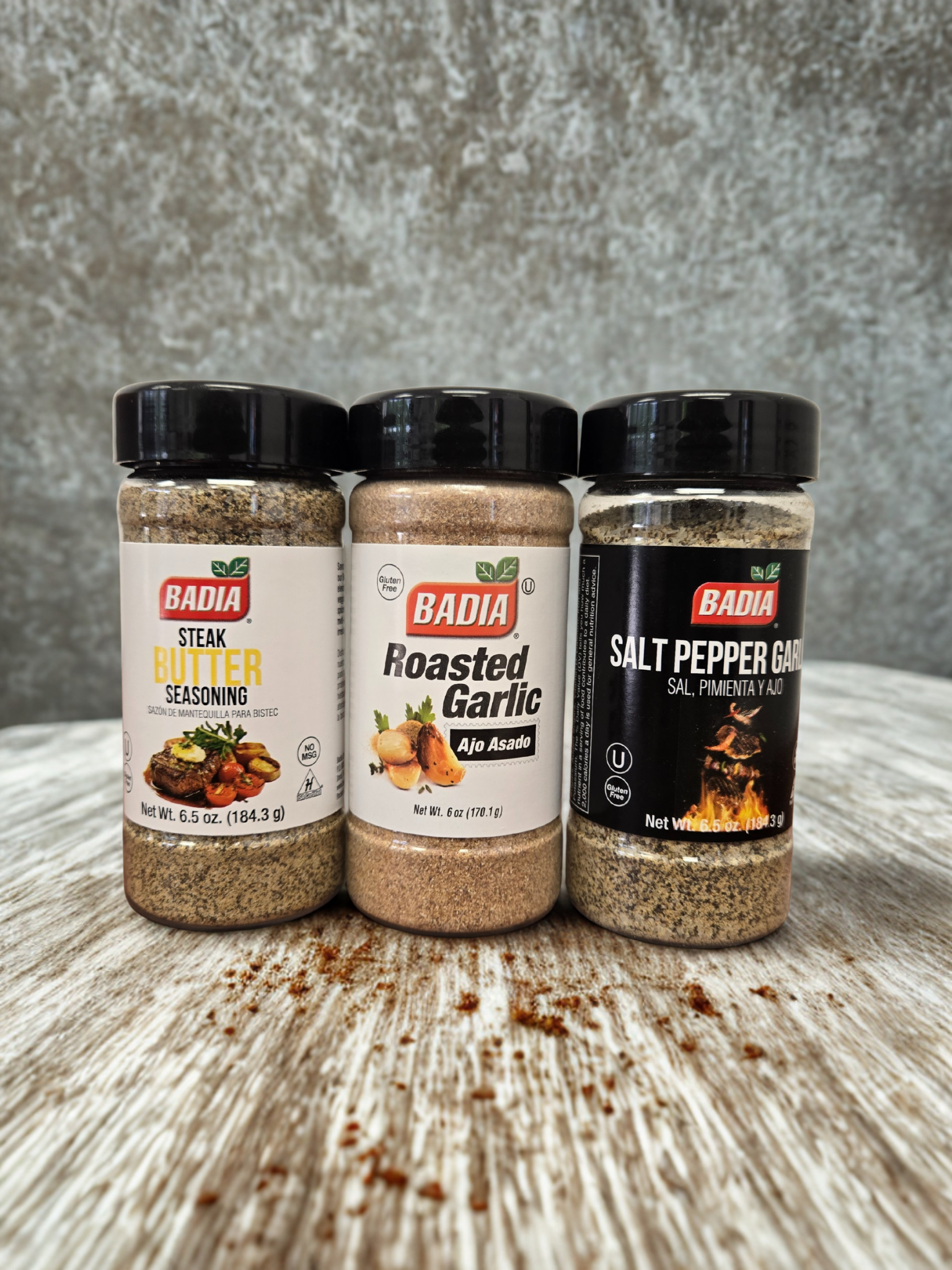 Elevate your football game day flavors with this expertly curated seasoning bundle. The Game Day Bundle features a premium selection of Badia’s finest spices, sauces, and marinades, including Sazon Tropical Mojo, Mojo Marinade, and Sriracha, designed to bring bold, vibrant tastes to your grill or kitchen. Complement your dishes with zesty Lime Pepper, Orange Pepper, and Lemon Pepper, alongside the tangy kick of Chile & Lime and Sriracha Salt. Enhanced further with Roasted Garlic, classic Salt and Pepper, and rich Butter Steak seasoning, this collection ensures every bite is packed with expertly balanced flavors.